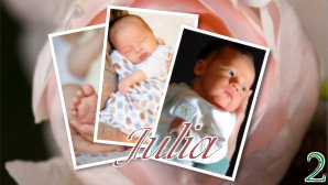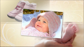 Associé aux styles scrapbook, choix de médaillons et cadres pour ouverture d’une vidéo Bébé.